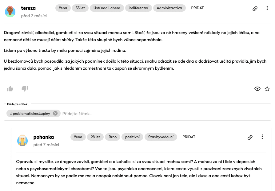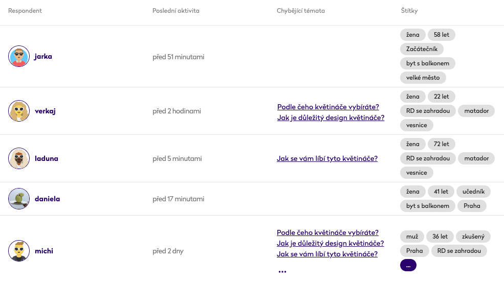 Hledáme způsoby, jak ulehčit moderátorovi práci, aby se mohl soustředit na to důležité. U každého respondenta např. vidí, kdy byl naposledy aktivní a ve kterých tématech ještě chybí jeho odpověď.